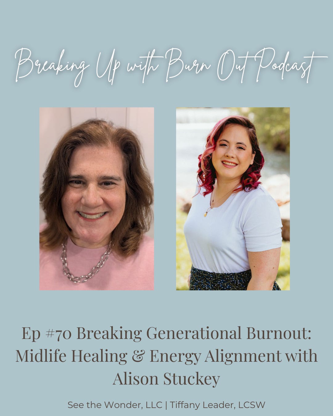 In this powerful episode of Breaking Up With Burnout, Tiffany sits down with intuitive energy healer Alison Stuckey to explore how ancestral conditioning, societal expectations, and midlife transitions create the perfect storm for burnout in women.